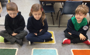 We start every Jigsaw session with Calm Me time. The children close their eyes, tune in to the sound of the chime bar and learn to calm themselves ready for the upcoming session using mindfulness techniques such as breathing out their rainbow breath.