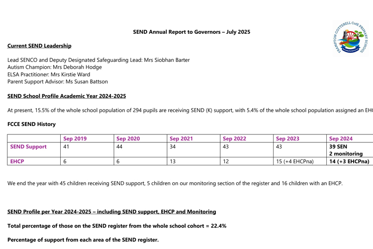 To contact our SENCO Mrs Barter, please phone 01454 867205, or email – office@fcceprimary.co.uk